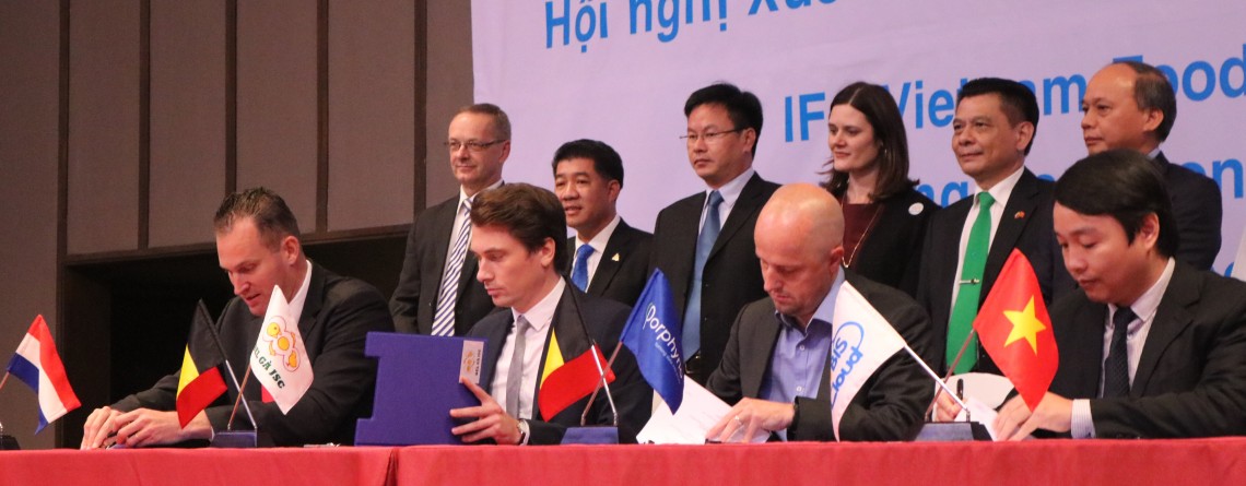 In the picture below, our MD Kristof Mertens (3rd from left), sealed the collaboration with our partners’ representatives Mr. Gabor Fluit (left, Director De Heus Vietnam), Mr. Kay De Vreese (2nd from left, Director Bel Ga) and Mr. Truong (right) from PERF .